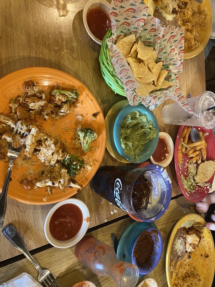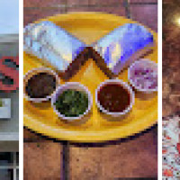 Filled with steak. Chicken and shrimp Topped with lettuce, sour cream and pico de gallo. Served with rice and beans.