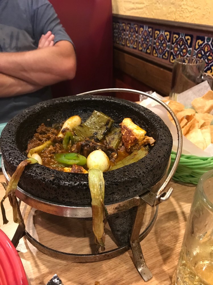 Ribeye, chicken breast, mexican sausage, ranchero cheese and cambray onions, all grilled with roasted anaheim pepper and cactus leaves. Smothered in green tomatillo sauce and served with a side of rice & beans, ranchero quesadilla (ranchero cheese, anaheim pepper and tomatillo sauce) and of course tortillas.